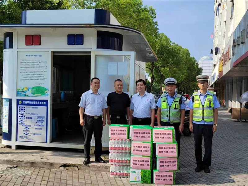 8月1日,巢湖商廈黨支部書(shū)記張亮同志帶領(lǐng)“遠(yuǎn)航”志愿者服務(wù)隊(duì),前往團(tuán)結(jié)路漱芳樓交警崗?fù)の繂?wèn)一線執(zhí)勤交警。