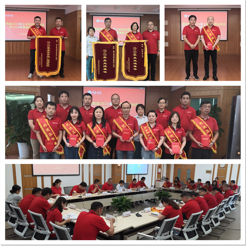 為深刻總結(jié)和剖析2021年上半年經(jīng)營工作,研究部署下半年工作,同時(shí)激勵(lì)表彰先進(jìn),7月22日上午,國生電器在商之都總部五樓會(huì)議室召開2021年上半年經(jīng)營分析會(huì)暨2020年度表彰大會(huì)。商之都總部和公司領(lǐng)導(dǎo)、先進(jìn)集體和先進(jìn)個(gè)人代表以及部門、門店相關(guān)人員參會(huì)。