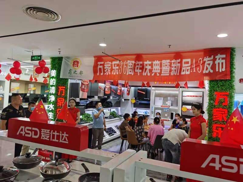 為營造節(jié)日現(xiàn)場氛圍,國慶期間國生電器六安商之都店與供應商組織多場產(chǎn)品品鑒、新品發(fā)布等互動活動。圖為萬家樂電器新品發(fā)布現(xiàn)場。