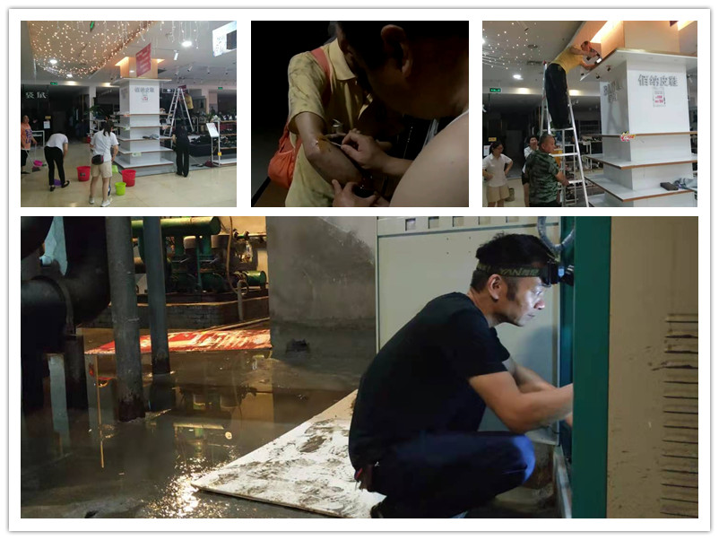 16日中午至夜間,暴雨傾注,淮南商廈一樓、二樓相繼出現(xiàn)漏水點(diǎn),需要及時(shí)處置,轉(zhuǎn)移商品。這是一場(chǎng)與時(shí)間的賽跑。員工們不怕臟、不怕累、搬貨品、堵漏洞、清積水,員工陶友君在搶險(xiǎn)過(guò)程中手臂劃傷仍然繼續(xù)工作。在大家共同努力下,23:00左右排除了安全隱患,確保商廈安全經(jīng)營(yíng)。(文/圖 賈賢春)