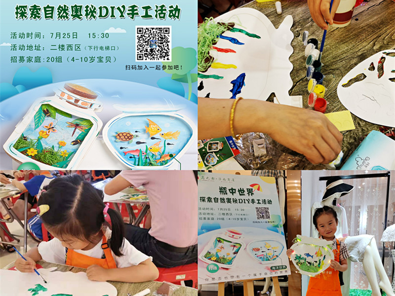 神奇的世界,奧秘無限?;茨仙虖B7月25日邀約20組家庭參加“探索自然奧秘DIY手工活動”,一起帶孩子探索瓶中的世界,了解大自然的奧秘和奇妙,讓孩子們在手工制作中感受到生態(tài)萬物的神秘和美麗。(文/圖 楊瑩瑩)