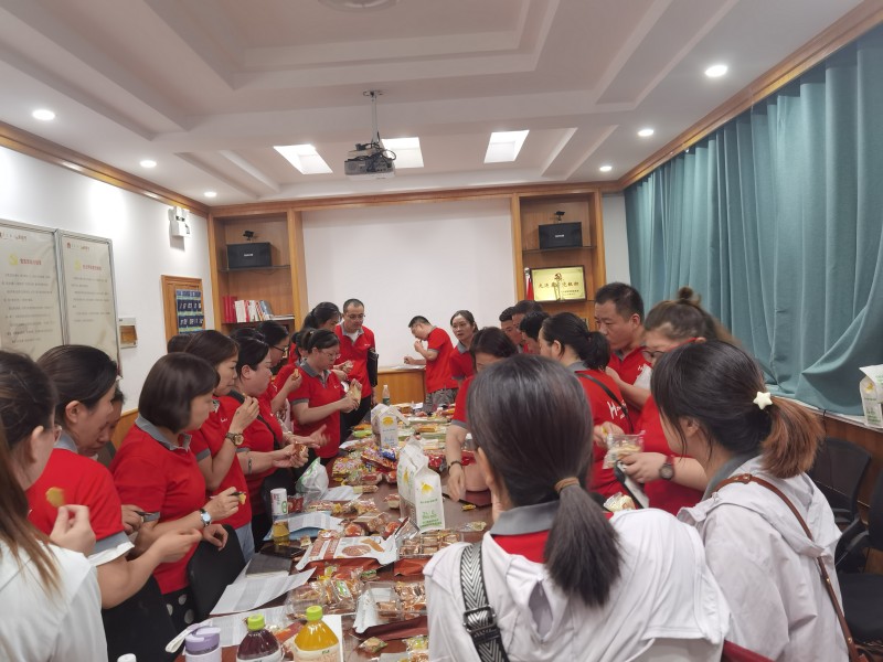 8月21日下午,紅府超市組織各門店店長在公司5樓會議室對準(zhǔn)備引進的休閑類自采新品進行品嘗、品鑒。