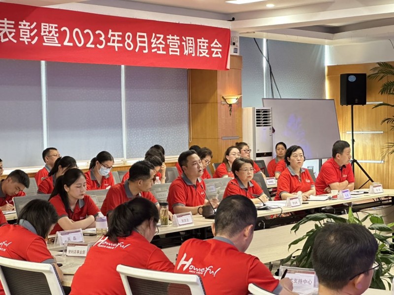 本次會議是超電融合后的首次經(jīng)營調(diào)度會,共進行了四項議程:一是表彰2022年度8個先進集體、73名先進個人,大力營造真抓實干、奮發(fā)向上的濃厚氛圍;二是通報公司1-7月份經(jīng)營情況,進行下一步工作提示;三是商流計劃完成經(jīng)驗分享和表態(tài)發(fā)言,并由董事長任等平對各單位匯報一一點評和指導;四是公司領(lǐng)導總結(jié)部署發(fā)言。總經(jīng)理李金梅分享了行業(yè)資訊,在肯定了公司1-7月經(jīng)營業(yè)績的同時,表示下半年的營收缺口較大,鼓勵大家堅定信心,努力完成利潤指標。她對下半年的工作進行了十點工作部署:一是要加快機構(gòu)改革,真正做到超電深度融合;二是提升單店經(jīng)營水平,改進管理質(zhì)量,加強責任心,提升對外形象和服務(wù);三是開展兩場主題營銷活動,大力做好家電909和紅動全城紙品宣傳活動;四是做好開閉店工作,做好項目移交工作、人員幫扶;五是做好門店調(diào)改工作;六是結(jié)合大干100天做好旺季銷售,圍繞營收核心指標,對團購、收費、收入、節(jié)支等方面層層細化,提質(zhì)增效;七是跟進公司年度重點工作,制定時間節(jié)點計劃,按計劃推進工作進程,確保年底完成目標任務(wù);八是做好審計、審查整改工作,問題及時響應(yīng),負責整改到位;九是八月組織召開主題生活會;十是關(guān)注安全問題,加強包括食品安全、消防安全、安全生產(chǎn)等方面的檢查能力,門店要注意用電安全,全面排查易燃易爆商品,做好安全防范,規(guī)避侵權(quán)行為,將安全工作落到實處。