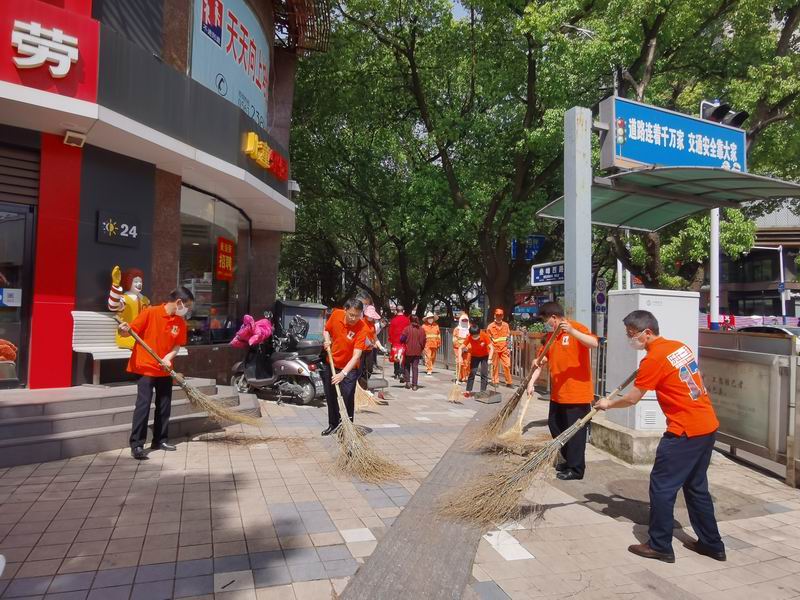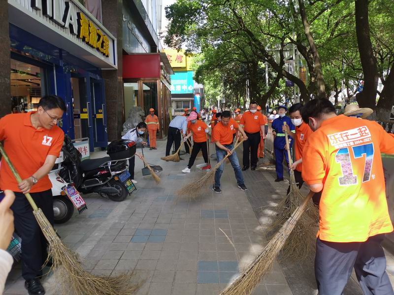 上午10:00,全體黨員、入黨積極分子、主辦以上人員身著17周年慶T恤走上街頭,拿起掃把、簸箕,與環(huán)衛(wèi)工人一起清掃狀元南路人行道,大家勞動(dòng)熱情高漲,經(jīng)過(guò)一個(gè)多小時(shí)的緊張勞動(dòng),狀元南路周邊的人行道變得干凈整潔。