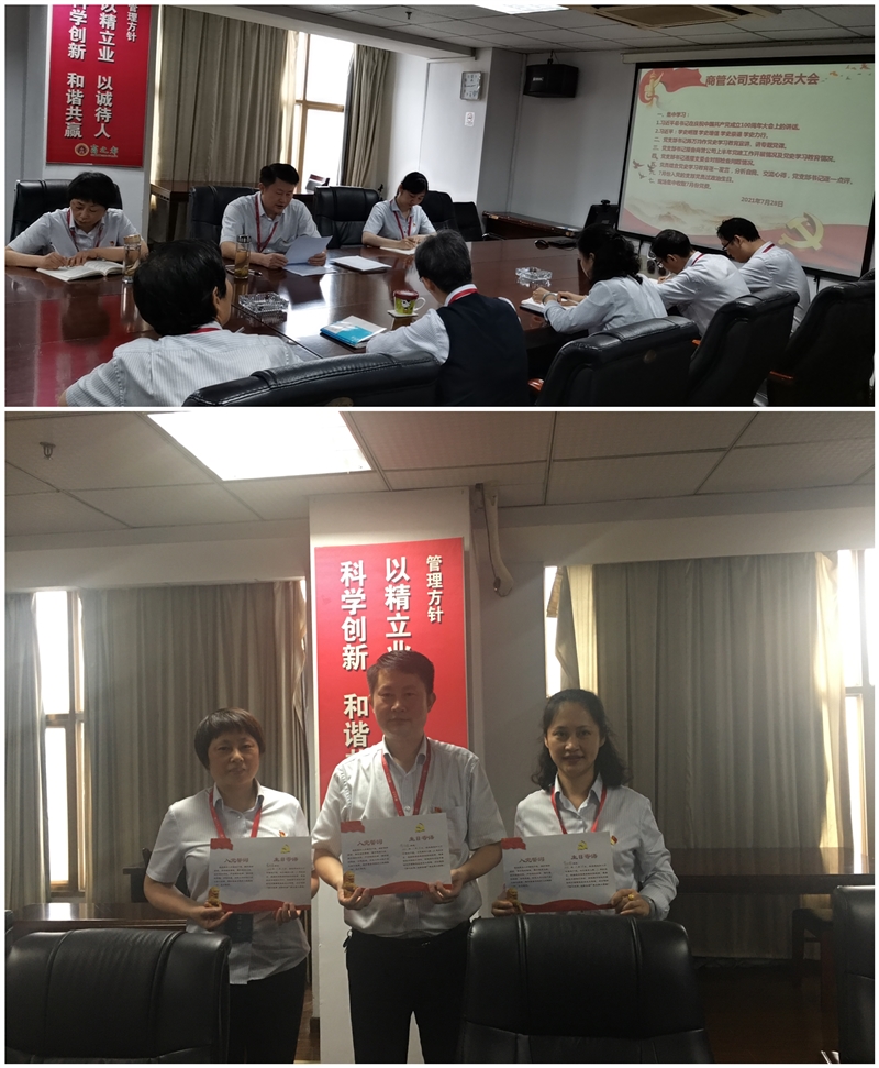 7月28日下午,商管公司黨支部書記陳萬均在六樓會議室主持召開了支部黨員大會暨7月份黨員活動日,開展黨員黨史學習教育分析交流研討,支部全體黨員參加會議。