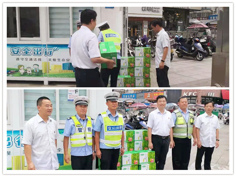 7月29日下午,巢湖商廈黨支部“遠(yuǎn)航”志愿者服務(wù)隊(duì)前往人民路交警崗?fù)の繂栆痪€執(zhí)勤交警,為他們送去降溫解暑的飲用水、涼茶等防暑慰問品,感謝他們?cè)谘籽紫娜找琅f堅(jiān)守在自己的崗位為廣大人民群眾出行創(chuàng)造了良好的道路交通環(huán)境。(文/李海梅 圖/吳銀圣)