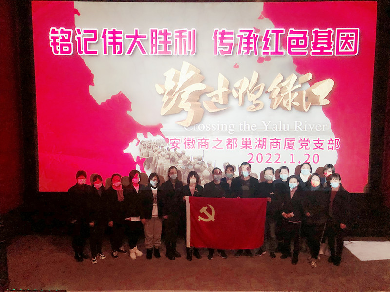 為推動(dòng)黨史學(xué)習(xí)教育縱深發(fā)展,持續(xù)營(yíng)造學(xué)黨史、看黨史、用黨史的濃厚氛圍,繼承革命傳統(tǒng),弘揚(yáng)偉大抗美援朝精神, 1月20日下午,巢湖商廈黨支部組織黨員及員工觀看電影《跨過(guò)鴨綠江》。