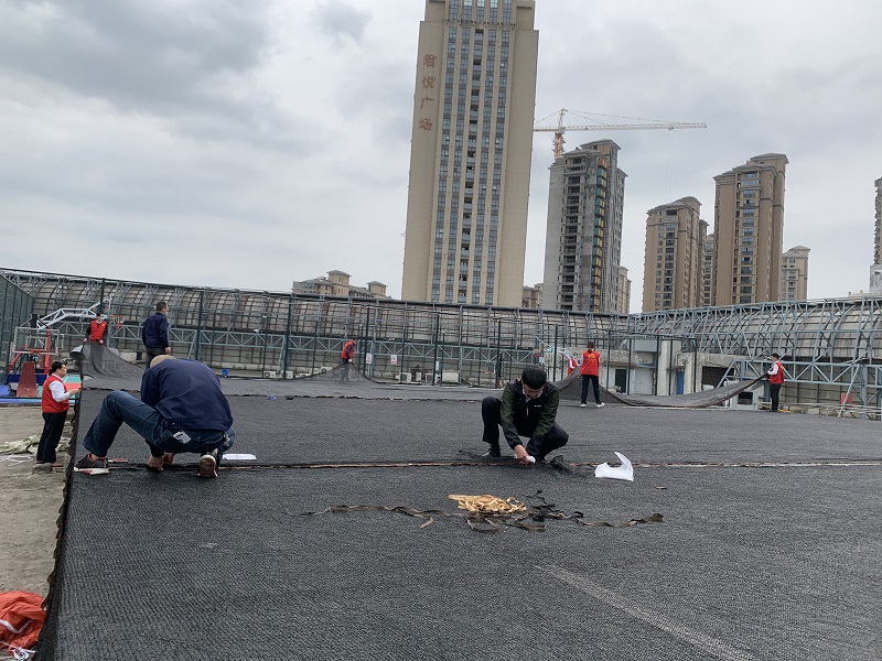 為了給顧客和員工提供一個舒適涼爽的購物、工作環(huán)境,支部黨員齊心協(xié)作,在購物中心頂樓屋面鋪設了防曬網(wǎng)。