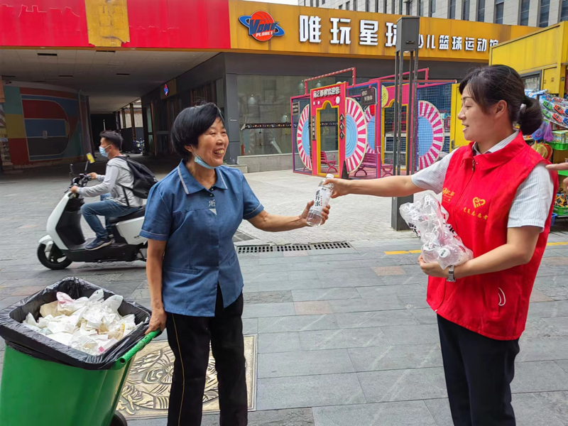 8月19日至21日,中心廣場黨支部為持續(xù)在高溫環(huán)境下工作的一線員工、商場顧客、戶外高溫工作者免費送去降暑涼飲,讓他們在炎炎酷暑中感受到絲絲清涼。