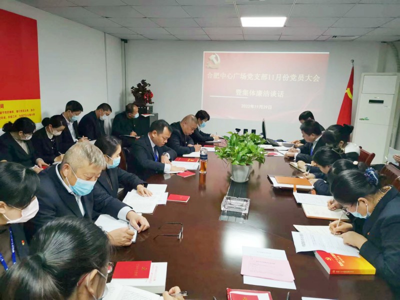 11月29日上午,中心廣場黨支部在五樓黨員活動室開展11月份黨員大會暨集體廉潔談話。公司中層以上管理人員,全體黨員、發(fā)展對象、入黨積極分子參會,支部書記陳功主持會議。