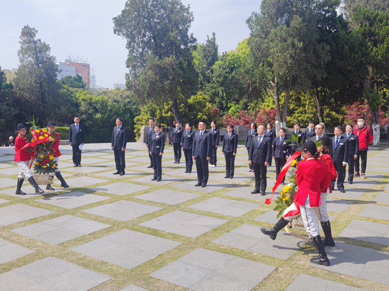 14時(shí)整,儀式開始,全場(chǎng)肅立,伴隨著深情的《獻(xiàn)花曲》,4名商之都禮儀隊(duì)員護(hù)送著花籃,緩緩走向烈士紀(jì)念碑,將花籃整齊擺放到紀(jì)念碑基座上。全體人員向烈士紀(jì)念碑行三鞠躬禮,隨后緩步繞行,瞻仰烈士紀(jì)念碑,深切緬懷革命先烈,整個(gè)活動(dòng)現(xiàn)場(chǎng)莊嚴(yán)而肅穆。