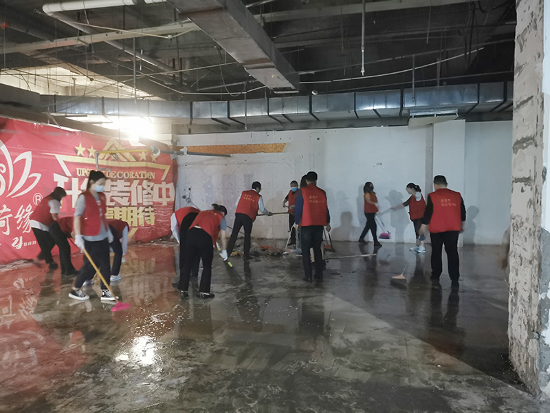 4月13日,霍邱商廈黨支部“心服務(wù)”小分隊再出發(fā)。全體黨員、入黨積極分子及入黨申請人共20余人對四樓3號位進(jìn)行衛(wèi)生大清理。大家拿著掃帚、鐵鍬等工具,分工協(xié)作、密切配合,對地面的油漬、垃圾等進(jìn)行了一次全方位地?fù)焓啊⑶謇?,現(xiàn)場隨處可見忙碌的身影。