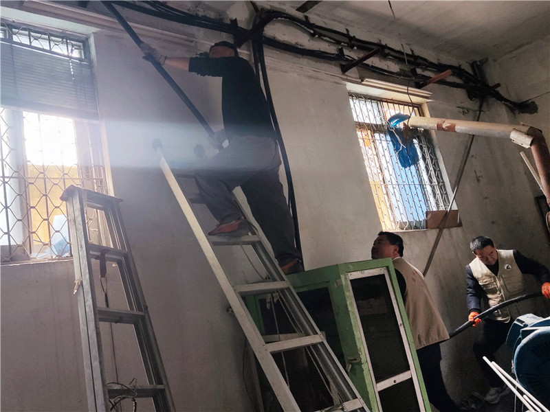 為確保商廈消防用電安全,完善消防雙回路用電,4月25日,巢湖商廈“遠(yuǎn)航”志愿者服務(wù)隊(duì)協(xié)助商廈電工重新敷設(shè)電纜。