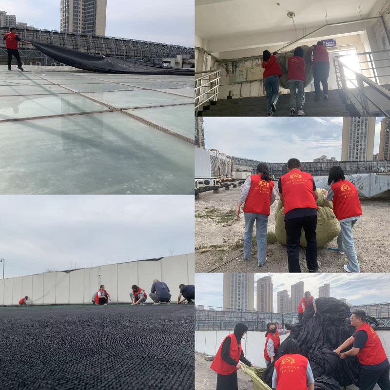 5月9日下午,池州購(gòu)物中心黨支部開(kāi)展“我為群眾辦實(shí)事”活動(dòng),為購(gòu)物中心頂樓屋面鋪設(shè)防曬網(wǎng),為顧客和員工提供一個(gè)舒適涼爽的購(gòu)物、工作環(huán)境,購(gòu)物中心黨員、入黨積極分子參加活動(dòng)。