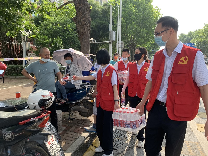 黨支部全體人員一早就來到了池州市第十中學(xué)、池州市第十一中學(xué)考點門口,為考生和家長送上礦泉水,特意定制的瓶貼表達了池州購物中心對學(xué)子們的美好祝福,祝愿他們金榜題名、前程似錦。