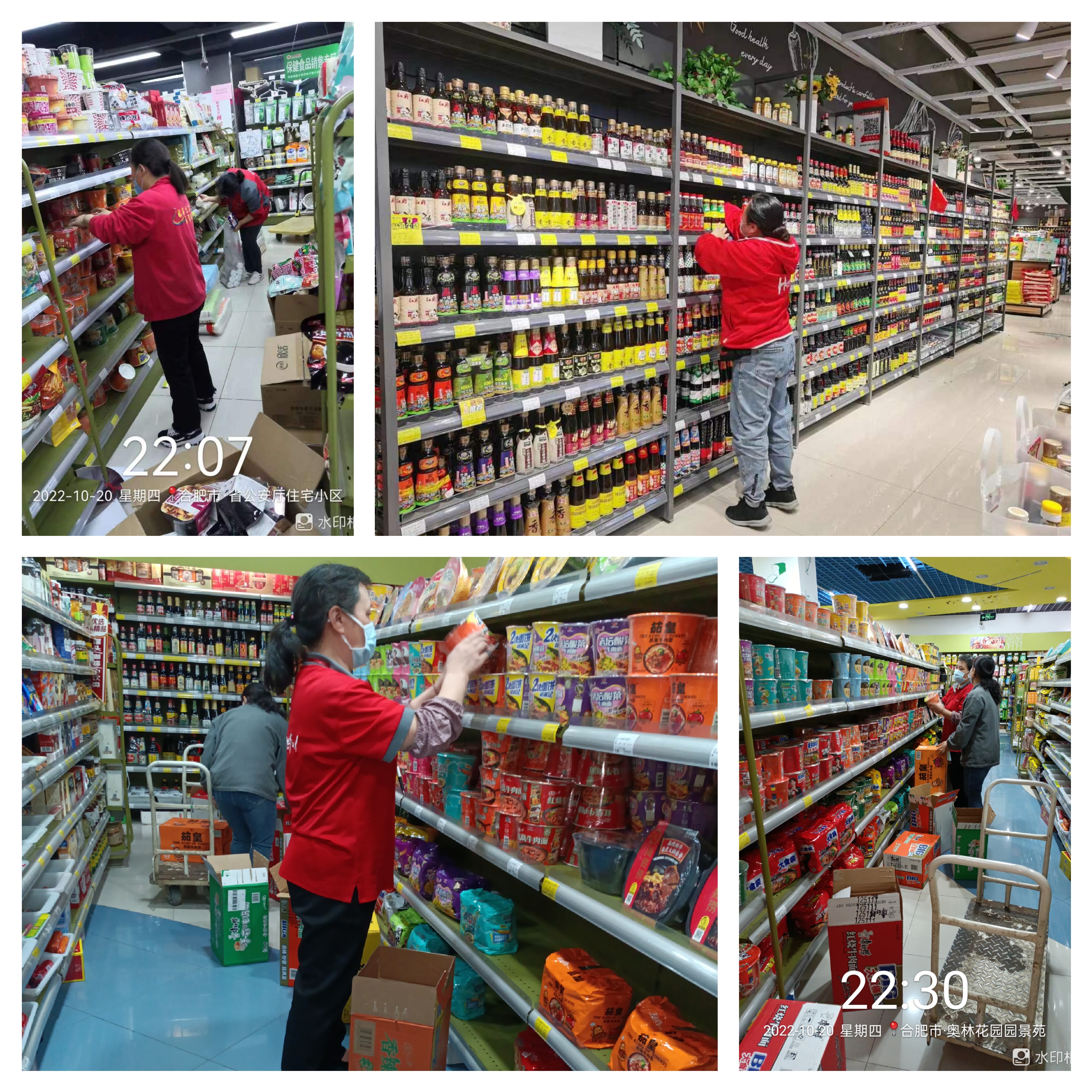 同樣的場景不止出現(xiàn)在優(yōu)山美地店,即使已是深夜,紅府超市各門店依然燈火通明、一片忙碌。自近期疫情形勢再度變得緊張起來,尤其10月20日大量民眾涌入超市,哄搶囤貨,作為省市兩級保供單位,紅府超市承擔(dān)了巨大壓力,尤其部分門店員工因疫情封控?zé)o法到崗,比如中心廣場店70余名員工,就有30多名員工封控在家,為了保障超市工作的正常運轉(zhuǎn),很多門店都是一人多崗、一人多班,總部也及時安排人員到各門店幫扶。隨著顧客的不斷增多,各門店排起了長龍,線上業(yè)務(wù)也出現(xiàn)了“爆單”,為了保障供應(yīng),紅府超市各門店延長工作時間,采購部門、配送部門也是全員在崗、緊急送貨,即使到了深夜沒有顧客,為了第二天的充足供應(yīng),門店的員工和相關(guān)部門的人員依然沒有休息,而是加班加點的進行補貨、上貨,保證排面的豐滿。