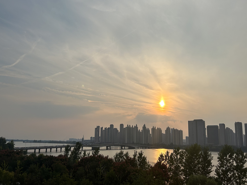 拍攝地點(diǎn):龍湖公園 拍攝時(shí)間:10月11日傍晚 拍攝內(nèi)容:站在龍湖東公園高處,西邊風(fēng)景盡收眼底,落日余暉、高樓聳立映入平靜的湖水,龍湖大橋上車水馬龍連接龍湖東西岸的繁華,近處綠色成蔭,若不是秋風(fēng)吹拂涼意襲來,已然忘記已入深秋。 (文/圖 張為為)