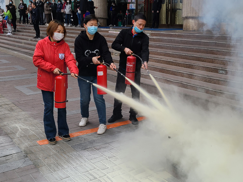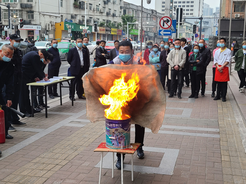 4月14日、15日早晨7:30,商之都中心廣場(chǎng)組織員工分兩批次在A座西大門(mén)廣場(chǎng)舉行大型滅火實(shí)戰(zhàn)演練和模擬油鍋起火演練,參加員工500余人,使用干粉滅火器和二氧化碳滅火器200余具。