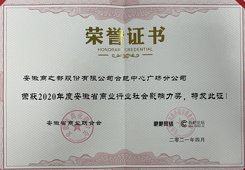 5月13日,“逆風破浪開新局”——安徽商業(yè)行業(yè)年度影響力峰會暨2020年安徽商業(yè)行業(yè)巔峰榜頒獎禮在合肥洲際酒店成功舉行。大會對2020年安徽商業(yè)行業(yè)有突出業(yè)績的企業(yè)進行了表彰,商之都中心廣場榮獲“社會影響力獎”。