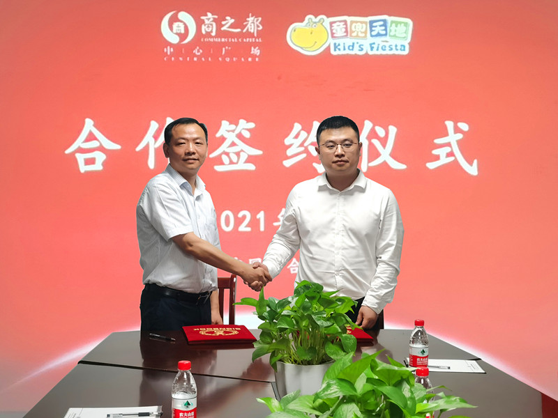 6月1日下午,中心廣場總經(jīng)理陳功與西藏童兜天地商業(yè)管理有限公司合肥濱湖分公司負(fù)責(zé)人周亞簽署戰(zhàn)略合作協(xié)議,宣告了商之都和“童兜天地”正式強(qiáng)強(qiáng)聯(lián)手。