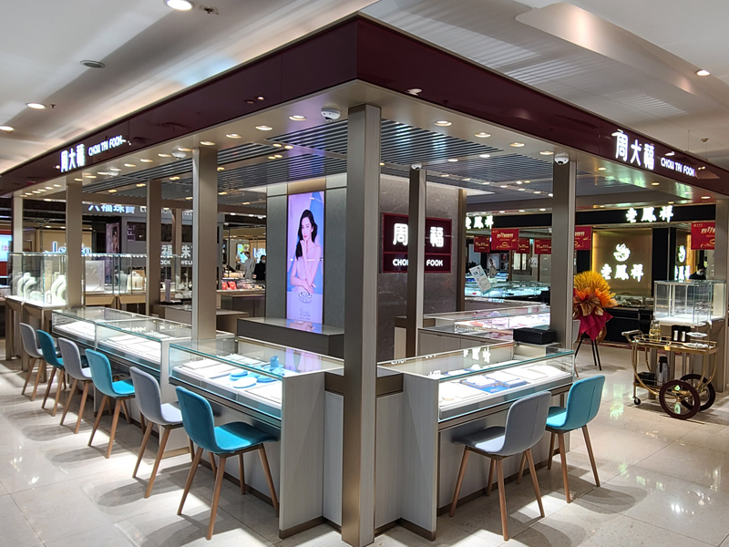 升級(jí)改造后的周大福專(zhuān)柜面積從原來(lái)的50余平方,擴(kuò)大到80余平方,從貨品陳列、貨柜組合、體驗(yàn)氛圍等多方面進(jìn)行了整體升級(jí),將原來(lái)移動(dòng)的“云柜臺(tái)”固定到柜臺(tái)內(nèi),從而使得專(zhuān)柜更加寬敞明亮,其新的設(shè)計(jì)風(fēng)格可以迎合不同年齡段的顧客。新柜開(kāi)柜首日銷(xiāo)售額同比上升253%。