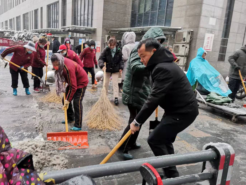 黨員同志積極主動(dòng),沖鋒在前,大家用鐵锨、掃把等清掃工具,分隊(duì)分片段進(jìn)行地毯式清掃。天空雪花飛舞,大家熱情高漲。經(jīng)過(guò)一個(gè)多小時(shí)的努力,商場(chǎng)門(mén)前、內(nèi)街等積雪處全部被清掃干凈,及時(shí)消除了行人及顧客出行的安全隱患。(文/劉光能 圖/謝廣元)