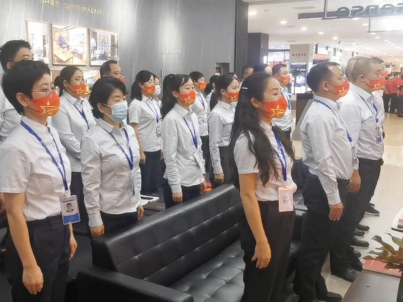 表彰會(huì)后,所有參會(huì)人員高唱《沒(méi)有共產(chǎn)黨就沒(méi)有新中國(guó)》《我們走在大路上》等經(jīng)典紅歌。唱出了愛(ài)國(guó)愛(ài)黨的澎湃激情,唱出了闊步前行的豪邁氣概。隨后舉行了莊嚴(yán)的升旗儀式。晨光中,隨著雄壯的國(guó)歌響起,大家深情注視著鮮艷的五星紅旗冉冉升起,再一次感受作為中國(guó)人的自豪。