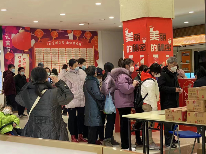 活動現(xiàn)場制作燈謎墻,張貼百條燈謎,禧樂猜燈謎,一起贏團(tuán)圓(競猜正確可獲得湯圓一袋),盡享年味滿盈。此次活動在延續(xù)春節(jié)喜慶氛圍的同時,更注重提升傳統(tǒng)燈謎的趣味性和知識面,吸引更多年輕顧客的融入。現(xiàn)場客流不斷涌入,既有年年光臨的老朋友,也有臨時加入的新顧客?;蛐赜谐芍?,或冥思苦想,或恍然大悟,或相互探討,或已興高采烈地領(lǐng)取獎品……現(xiàn)場元宵節(jié)氛圍感拉滿。
