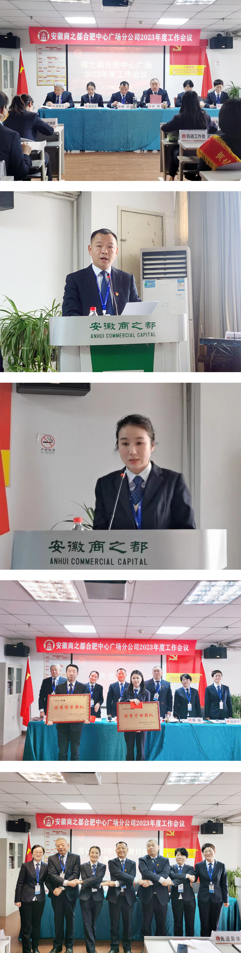 會議通報了中心廣場2022年度獲得總部以上榮譽(yù)的集體和個人,表彰了中心廣場2022年度先進(jìn)集體和個人以及百日大戰(zhàn)節(jié)能降耗、招商突破、穩(wěn)商穩(wěn)柜、優(yōu)秀宣傳等四個集體獎項。