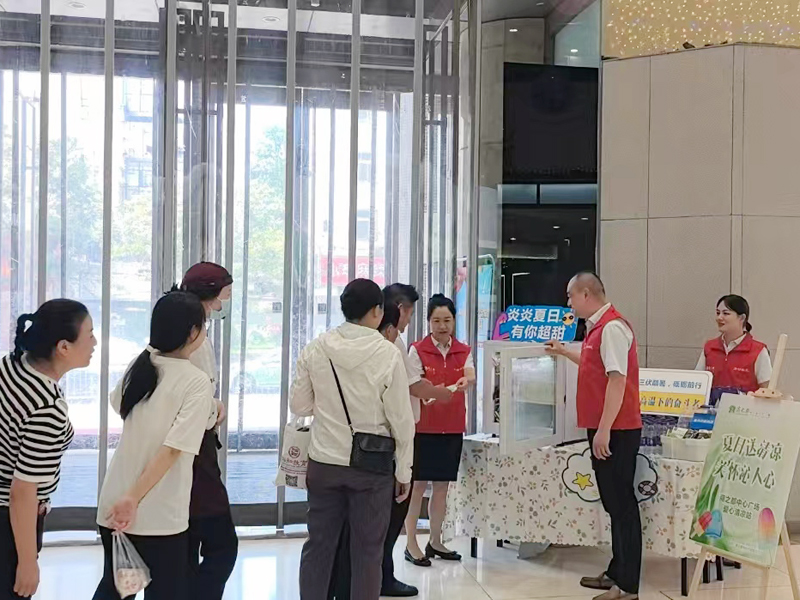 活動(dòng)現(xiàn)場(chǎng),志愿者們?cè)缭绲孛β灯饋恚臏?zhǔn)備了防暑藥品、冷飲、礦泉水等清涼物品。這些飽含著公司關(guān)心關(guān)愛的物品被逐一分發(fā)到每一位員工的手中。進(jìn)店的顧客也紛紛加入其中,領(lǐng)取清涼物品。大家臉上洋溢著幸福的笑容,內(nèi)心的喜悅溢于言表,紛紛表示感受到了中心廣場(chǎng)的溫暖。