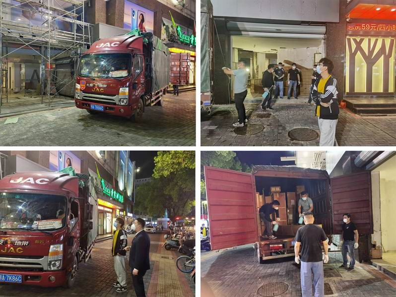 4月21日,裝運(yùn)專柜道具的貨車從福建泉州出發(fā)到達(dá)宣城,宣城商廈嚴(yán)格按照當(dāng)?shù)胤酪卟块T要求并及時(shí)向總部報(bào)備,由商廈領(lǐng)導(dǎo)和社區(qū)防疫工作人員到高速路口接送,全程陪同。整個(gè)過程貨車司機(jī)不下車,道具先殺菌再卸貨,嚴(yán)格做好防護(hù)。