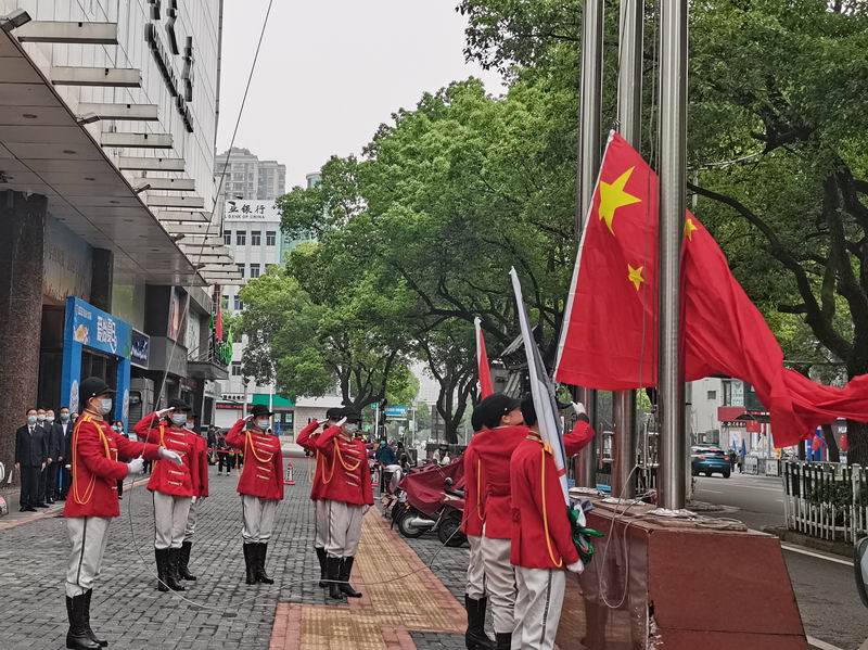 致敬勞動(dòng)者:“五一”早晨,宣城商廈在門前廣場(chǎng)舉行大型升旗儀式。