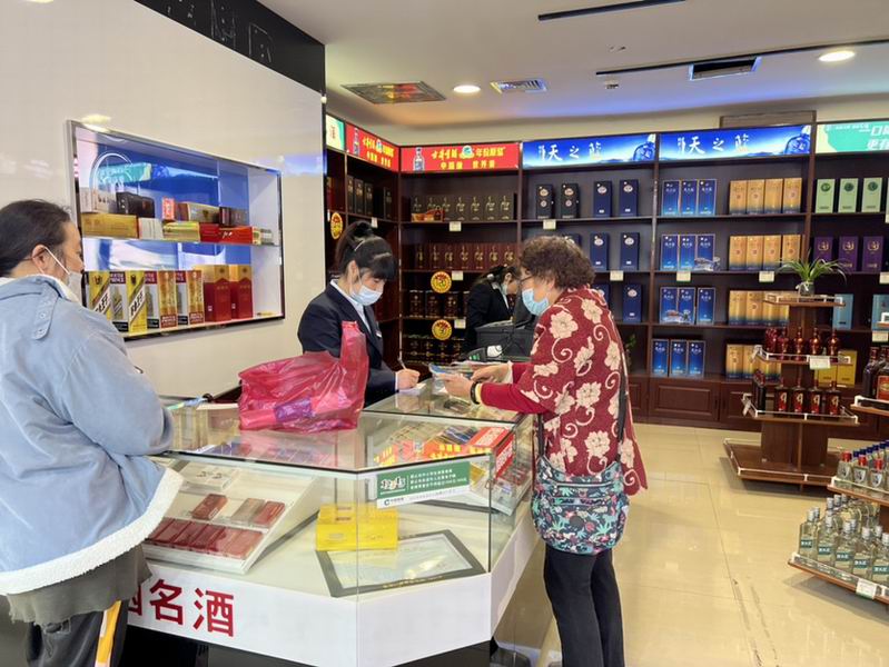 五一期間,宣城商廈自營(yíng)煙酒柜商品豐富并參與工行刷卡滿減活動(dòng),營(yíng)業(yè)剛開(kāi)始顧客就趕來(lái)交款。