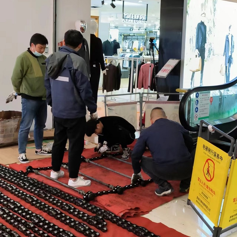 在四月份安全生產檢查中,后勤保障部設備維護員發(fā)現(xiàn)商場一層2部手扶電梯存在安全隱患,當即停用了故障電梯,并第一時間聯(lián)系了電梯維保單位檢修。經現(xiàn)場排查,迅速找出了故障原因,制定了維修方案。電梯配件到貨后,維修人員緊鑼密鼓地對電梯故障部件進行拆卸更換,用最短的時間完成了電梯維修工作,保障了員工和顧客的乘梯安全。