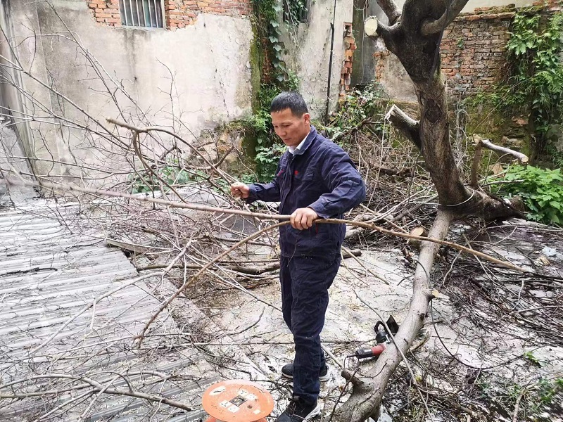 后勤保障部門員工迅速出擊,5月11日上午對倚靠在墻體上的老梧桐樹進行砍伐拆解。大家合理分工,一組負責砍伐斷根、一組負責枯枝收集,經(jīng)過約3個小時辛苦作業(yè),消除了安全隱患,保障了商廈的安全經(jīng)營秩序。