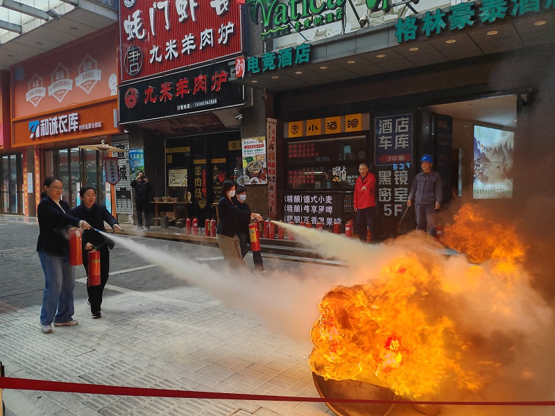 8:00時(shí),消防監(jiān)控室模擬火情,啟動(dòng)商廈消防應(yīng)急廣播,商場(chǎng)內(nèi)警鈴四起,各樓層員工及租賃單位人員在疏散引導(dǎo)員的引導(dǎo)下,緊張有序地安全到達(dá)室外指定位置。商廈安全管理人員先對(duì)消防知識(shí)進(jìn)行了培訓(xùn),重點(diǎn)介紹了滅火器的使用方法和要點(diǎn),隨后開展了滅火實(shí)戰(zhàn)演練,參演員工結(jié)合日常培訓(xùn)所學(xué)的安全知識(shí)沉著、冷靜、快速地?fù)錅缌舜蠡稹?/span>