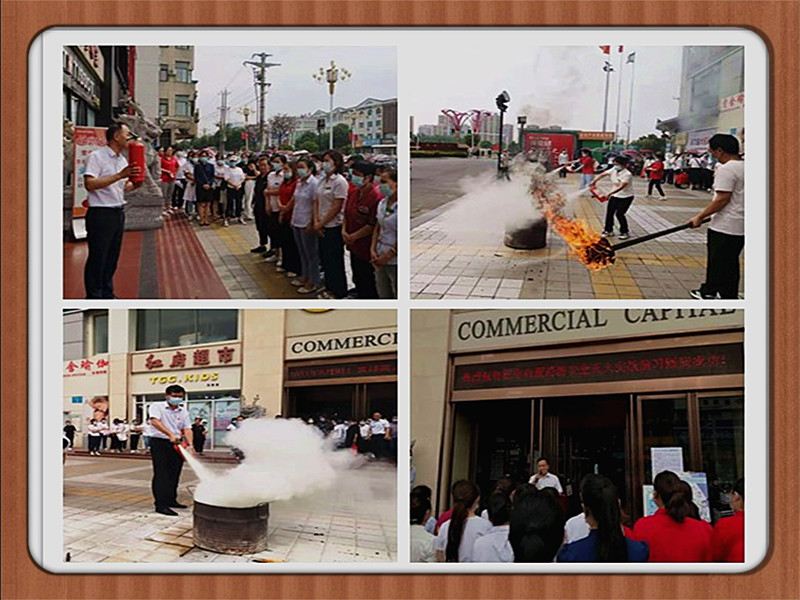 6月9日下午,霍邱商廈在門前廣場(chǎng)組織員工開(kāi)展消防滅火實(shí)戰(zhàn)演習(xí)。