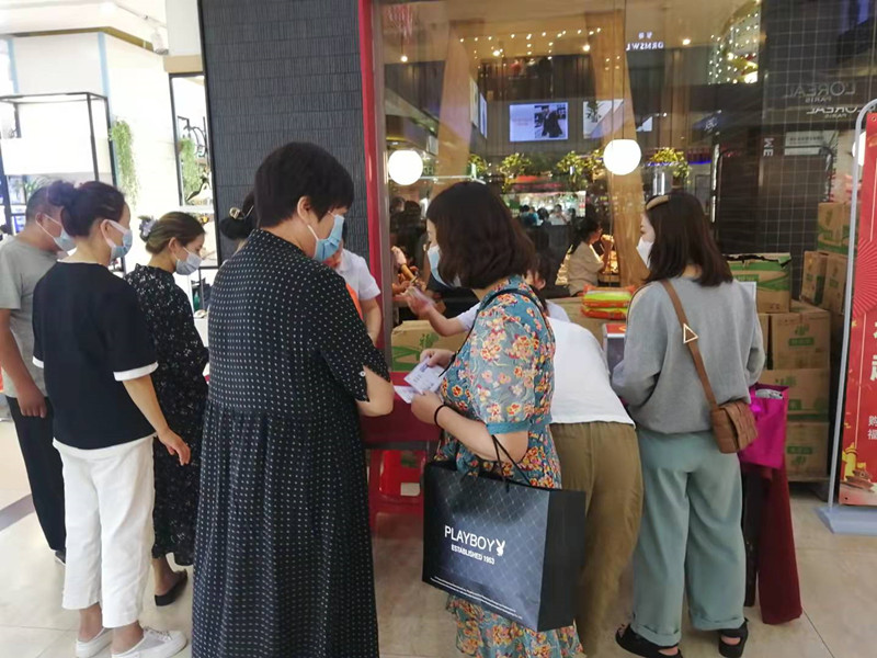 二線人員在一樓大廳南側(cè)引導(dǎo)顧客填寫抽獎(jiǎng)券和發(fā)放禮品。