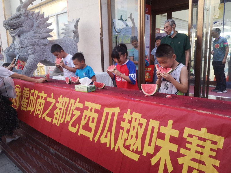 7月15日晚間,霍邱商廈 “吃西瓜”趣味賽在門前廣場拉開帷幕。