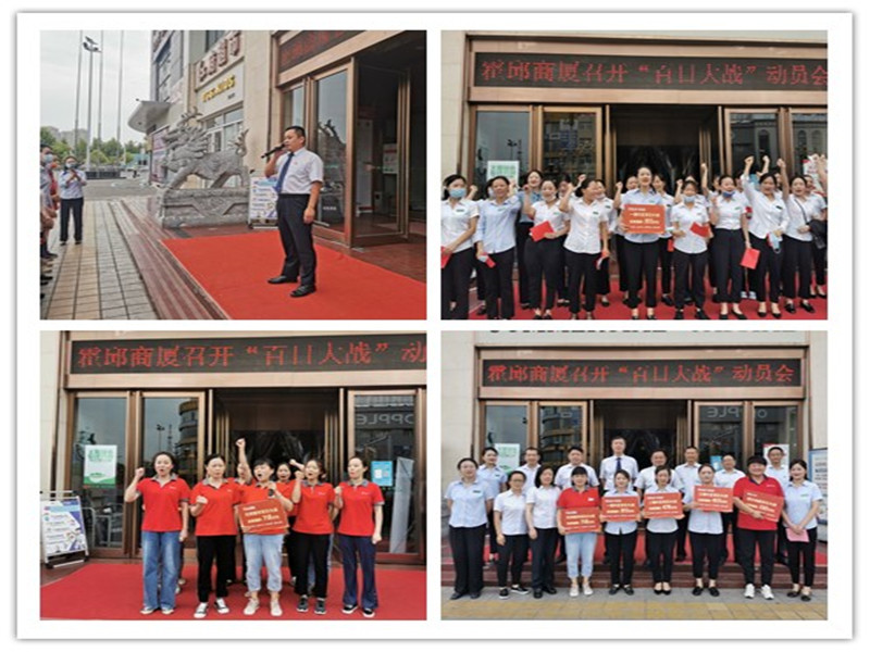 9月8日上午,霍邱商廈在門前廣場召開2022年“百日大戰(zhàn)”動員會,百貨、紅府、國生全體當班員工參會。