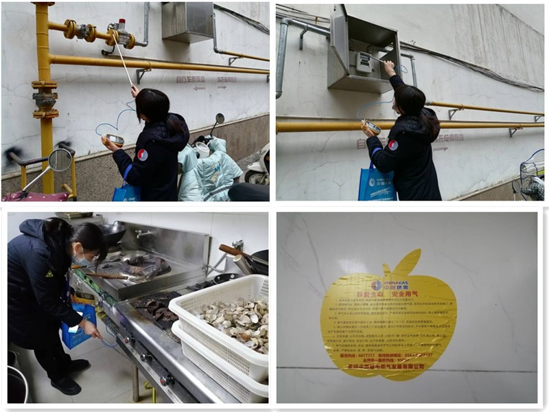 安檢人員分別對燃?xì)庥?jì)量表、戶內(nèi)外管、閥門、連接軟管、燃?xì)庠O(shè)備等進(jìn)行了檢測,查看是否存在漏氣、腐蝕、老化的現(xiàn)象,檢查過程中,安檢人員對計(jì)量表電池,燃?xì)鈭?bào)警器的使用提出了建議和要求,同時(shí)為廚房墻面張貼了安全用氣告知,詳細(xì)為用戶講解燃?xì)庠O(shè)施的操作方法,以及燃?xì)庑孤┖蟮膽?yīng)急處置流程等安全知識的培訓(xùn),確保用氣使用安全。