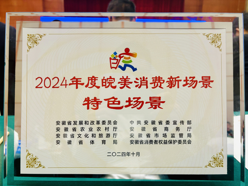 近日,六安商廈榮獲由安徽省發(fā)展和改革委員會聯(lián)合省委宣傳部、省農(nóng)業(yè)農(nóng)村廳、省商務(wù)廳、省文化和旅游廳、省市場監(jiān)管局、省體育局以及省消費(fèi)者權(quán)益保護(hù)委員會共同頒發(fā)的“2024年度皖美消費(fèi)新場景特色場景”榮譽(yù)稱號。