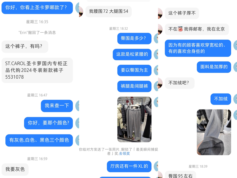 “小紅書上有顧客咨詢圣卡蘿女裝,請(qǐng)盡快回復(fù)下”。三樓女裝賣場圣卡蘿店長收到信息后第一時(shí)間回關(guān)了顧客。在交談中得知,顧客遠(yuǎn)在北京,無法到店試穿,確定不了自己所穿尺碼的大小,想通過提供尺寸,幫推薦合適的型號(hào)。了解到顧客的需求和顧慮后,圣卡蘿店長找到賣場中身材比例與顧客相似的員工進(jìn)行試穿,并將試穿效果和建議反饋給顧客,針對(duì)顧客提出的疑問一一解答。經(jīng)過長達(dá)5小時(shí)的信息交流溝通后,顧客最終決定下單購買。