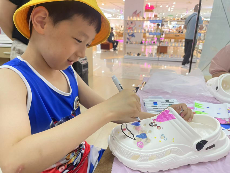 6月15日下午,六安商廈聯(lián)合紅黃藍(lán)畫室組織開展“爸氣十足 步步相伴”主題活動(dòng),在這充滿溫情與愛的日子里,孩子們相聚在一樓嘟嘟閱讀圈,以父親節(jié)為契機(jī),通過顏料DIY拖鞋這一獨(dú)特的活動(dòng)形式,讓孩子們與爸爸?jǐn)y手,用畫筆在拖鞋上描繪創(chuàng)意:有的勾勒出超人爸爸守護(hù)自己的場(chǎng)景,有的繪上一棵大樹。創(chuàng)作中,笑聲與交流聲交織,親子間情感在色彩碰撞里升溫,家長(zhǎng)們表示,通過互動(dòng),更懂孩子內(nèi)心;孩子們則笑著說,和爸爸一起畫畫、過節(jié),超幸福!