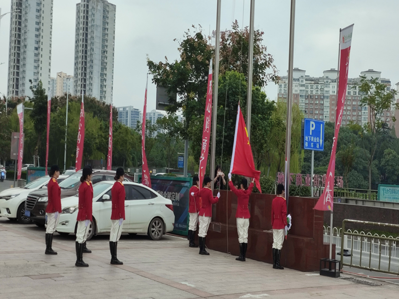 10月1日兩場(chǎng)活動(dòng)吸引眾多市民參與,清晨,不少市民攜老帶幼匯聚商場(chǎng)廣場(chǎng),共同見證升旗儀式,雄壯國歌聲中,五星紅旗緩緩升起,大家手持國旗肅立行注目禮,齊唱國歌,現(xiàn)場(chǎng)莊重而熱烈。當(dāng)日下午,商廈聯(lián)合紅黃藍(lán)書畫苑組織30名孩子開展“百米長卷 童繪中國”活動(dòng),孩子們以畫筆勾勒祖國壯麗山河,書法對(duì)祖國的熱愛與祝福。