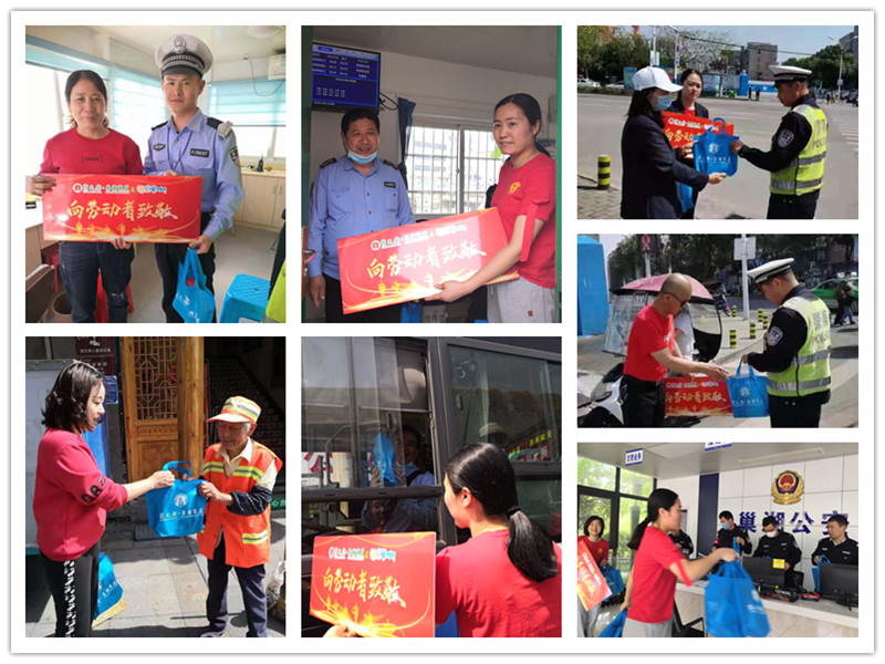15名員工著統(tǒng)一工服以商之都為中心分5條線路向周邊輻射行進(jìn),為交警、環(huán)衛(wèi)工人、出租車司機(jī)、公交車司機(jī)、外賣小哥等節(jié)日期間仍辛勤工作的勞動(dòng)者們獻(xiàn)上愛(ài)心禮物和節(jié)日的問(wèn)候。