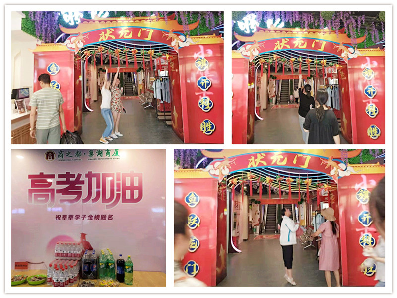 本次巢湖商廈繼續(xù)在商廈內(nèi)建立了高/中考服務(wù)站,為高考學(xué)生和家長提供飲用水、防暑藥等消暑用具?,F(xiàn)場搭建的狀元門吸引了不少考生們前來“沾喜氣”。