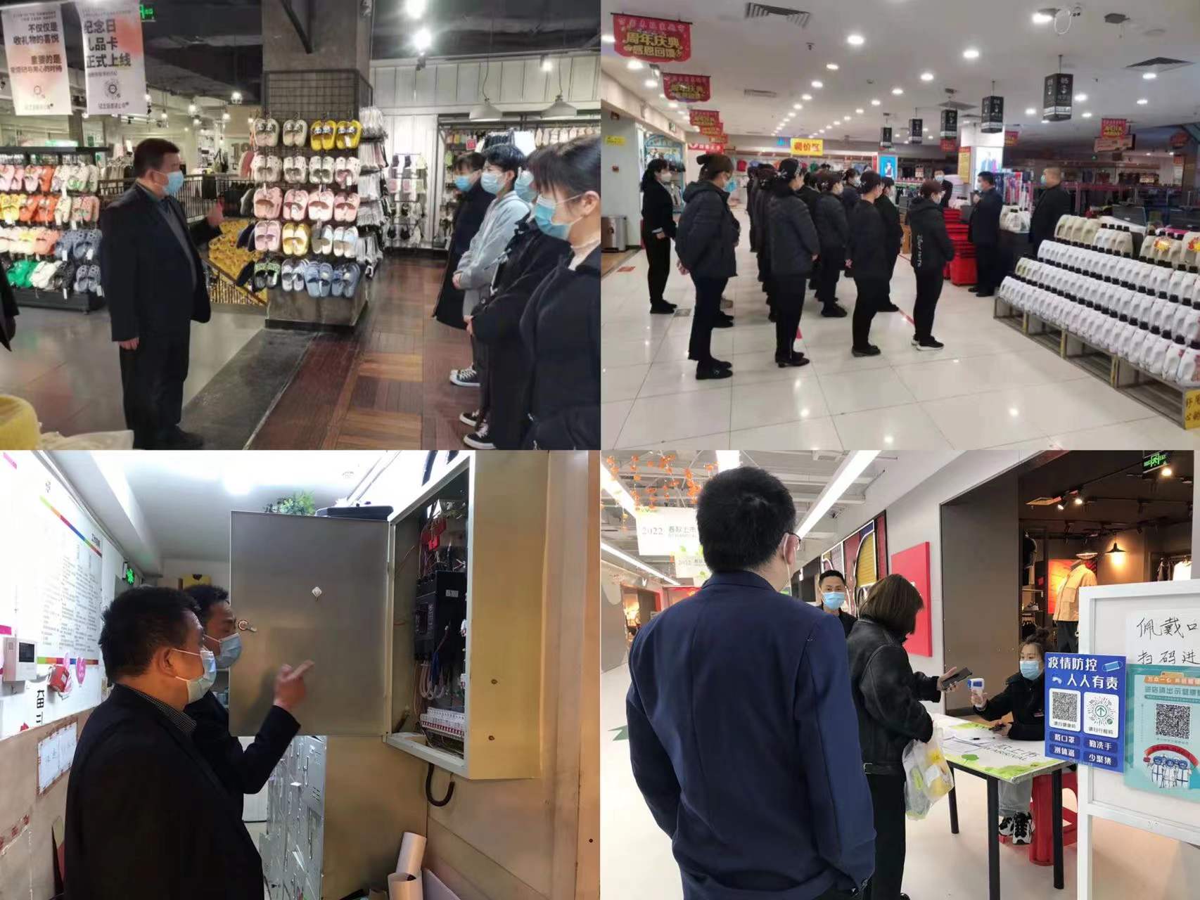4月1日上午,商廈總經(jīng)理朱文濤帶隊,匯同綜合后勤保障部門組成督查小組,現(xiàn)場對店鋪員工進(jìn)行了疫情防控宣貫和指導(dǎo),要求大家嚴(yán)格履行職責(zé),切實把各項疫情防控措施落到實處。下午,督查小組對商廈的用電設(shè)備及消防設(shè)施進(jìn)行了檢查,要求及時整改檢查中發(fā)現(xiàn)的問題,杜絕安全事故發(fā)生。(文/王衛(wèi)軍 圖/鄭貞弟)