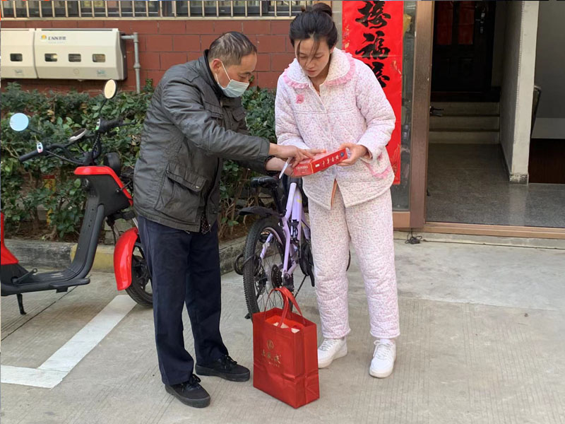 服務不打烊:滁州商廈煙酒滕建軍為顧客送貨上門 拍攝時間:年三十上午十點:地點:軍干所家屬樓下 圖為:滕建軍指導顧客驗收商品