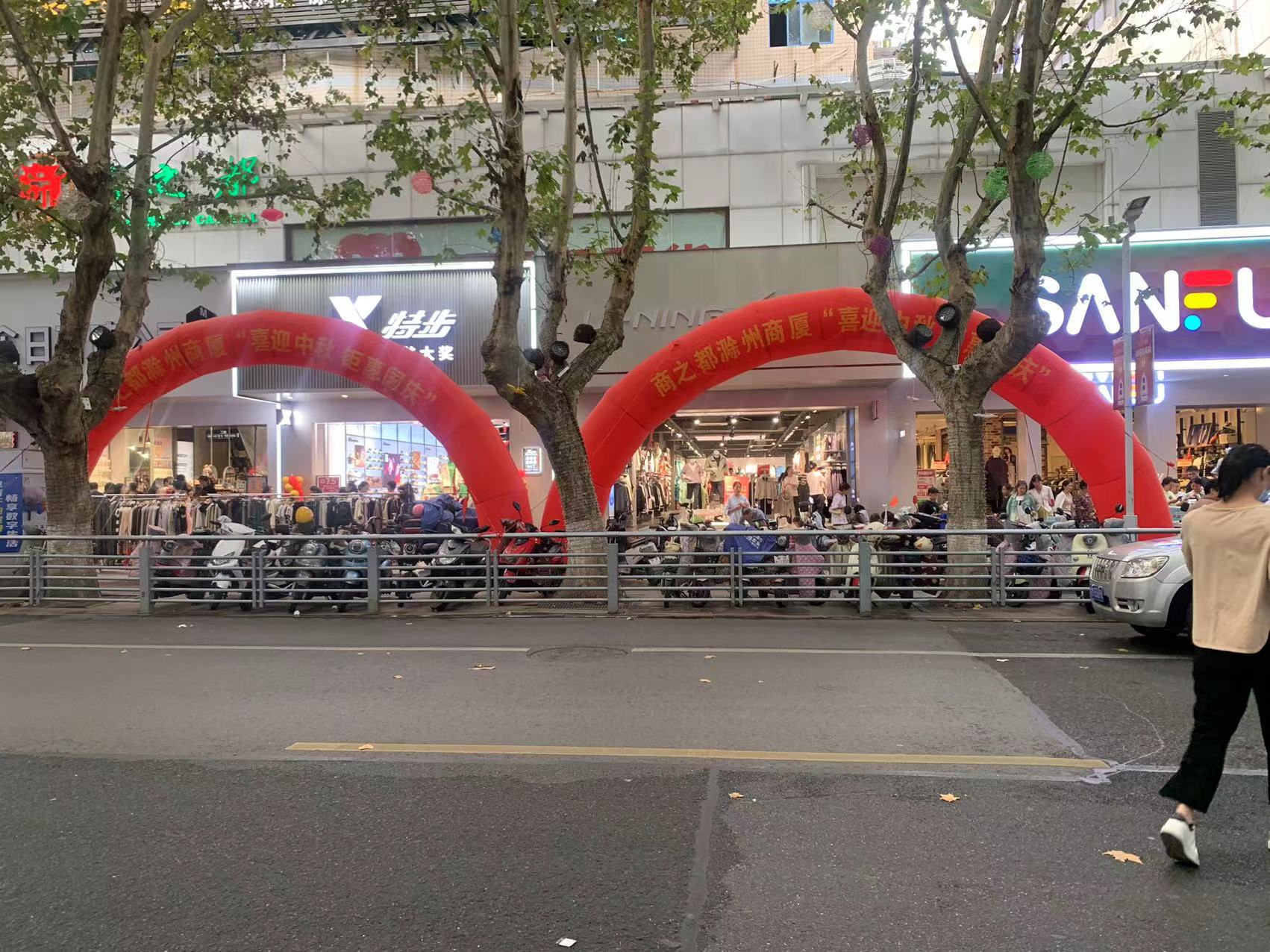 臨近雙節(jié),天長(zhǎng)路假日氛圍漸濃,沿街店鋪兩旁掛上了國(guó)旗,門(mén)前彩虹門(mén)也進(jìn)一步突出了節(jié)日的氛圍。